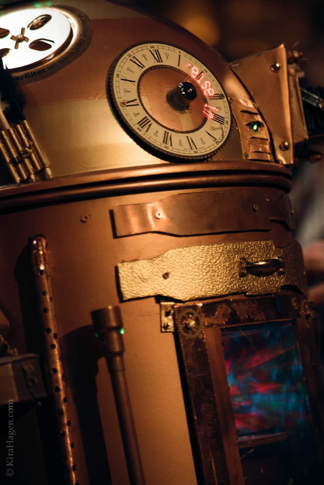 Der einzigartige D.A.D.Z. verfügt über einen Dampf-Zeitstrudel-Antrieb, den man durch eine Scheibe an der Front gut beobachten kann, auch sein Schornstein dampft nimmermüde vor sich hin. Für eine angenehme Zeitreise ohne Gefahren verfügt das Modell sogar über eine Aetherfilter-Anlage! Der Kreisel-Wetter-Würfel warnt vor Turbulenzen, denn wer möchte schon nach einer langen Zeitreise am Zielort im Regen stehen… Das Sprachmodul sorgt zudem für unterhaltsame Zeitreise Musik und kann auf alle Epochen eingestellt werden. Die beiden eingebauten Kameras sorgen für eine gute Vorwärts und Rückwärtsreise durch die Zeit.